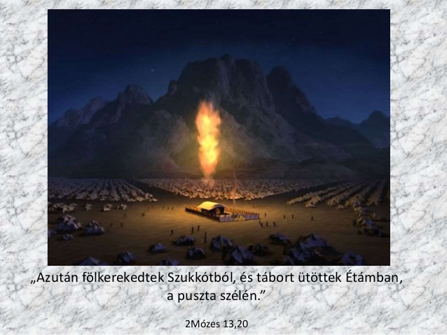 " Az Úr előttük vonult, hogy mutassa az utat, nappal felhőoszlopban, éjjel pedig tűzoszlopban, hogy mind a két napszakban vezérelje őket az úton. 22A nép elől sohasem hiányzott nappal a felhőoszlop, éjjel pedig a tűzoszlop." Kiv 13, 21-22